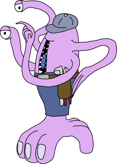 Ptolemy Brown, often called just "P.B.", enjoys something of a monopoly as Teras Terrace's only resident plumber. His long, extendable and retractable eyestalks and tentacular arms particularly suit him to this job, as he can snake an eye down a drain to see what's blocking it, and then an arm down to take care of it. While a capable plumber, however, P.B. tends toward amorality, and while he's more or less reliable in his professional capacity he's not exactly a paragon of virtue off the job.